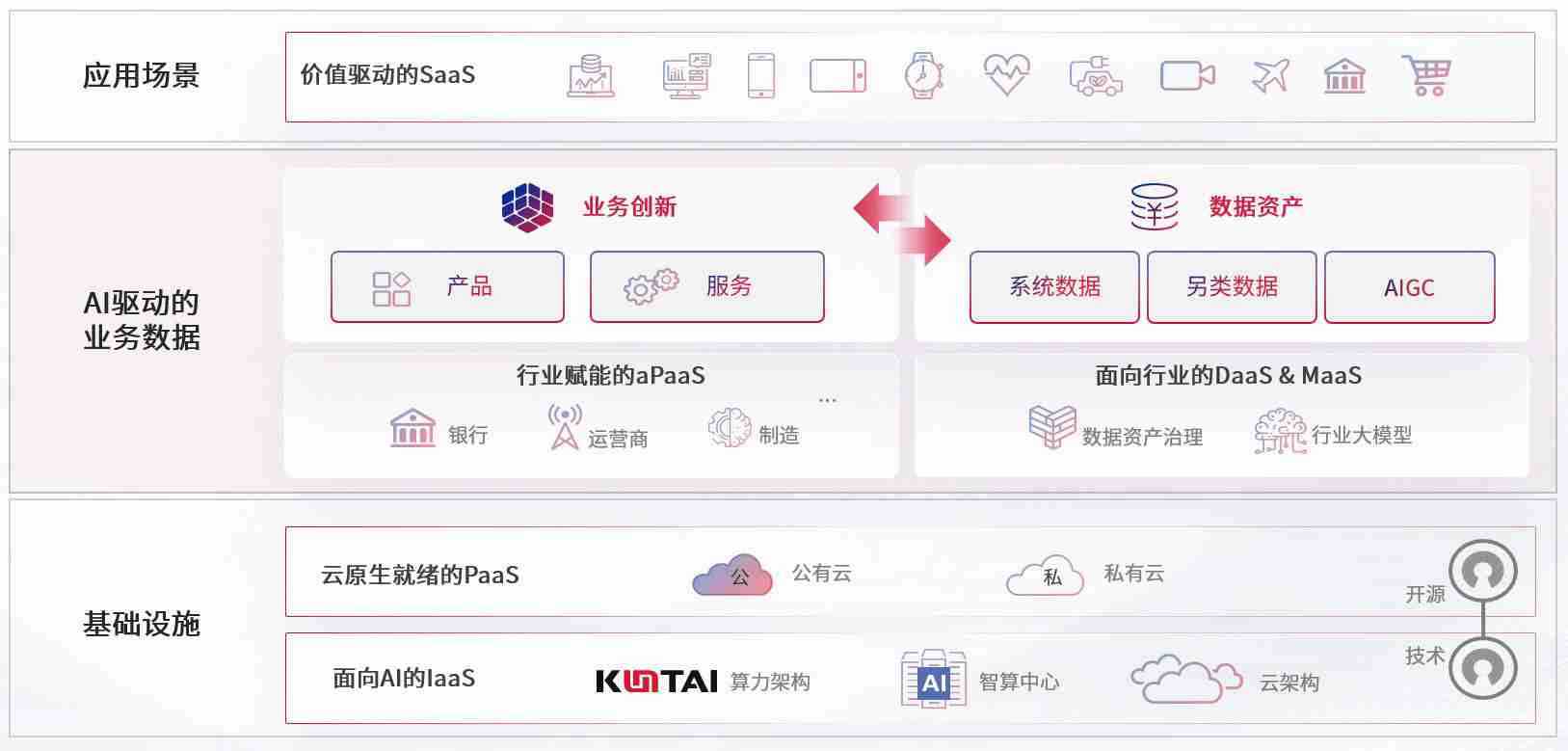 数字时代,,围绕企业数字化转型的关键要素,,,,MANBETX数码开创性的提出数云融合战略和技术体系框架,,,,着力在云原生、、数字原生、、、AI原生和信创产业上架构产品和服务能力,,,为处在不同数字化转型阶段的快消零售、、汽车、、、、金融、、、、医疗、、政企、、、教育、、运营商等行业客户提供泛在的敏捷IT能力和融合的数据驱动能力,,,构建跨界融合创新的数字业务场景和新业务模式,,,,助力企业级客户建立面向未来的核心能力和竞争优势,,,全面推动社会的数字化、、、、智能化转型升级。。